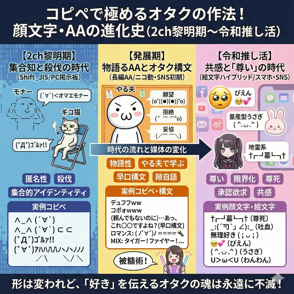 コピペで極めるオタクの作法!2ch黎明期から令和の推し活まで顔文字総まとめ