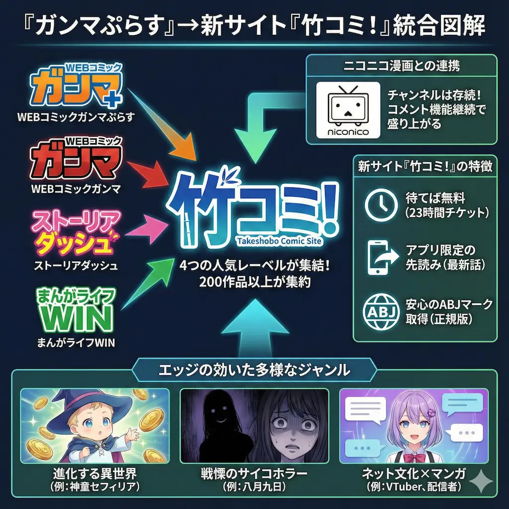 『ガンマぷらす』が新サイト『竹コミ!』へ統合!ニコニコはどうなる?