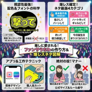 遠目には黒い集団に見えますが、近づくと推しへの強烈な愛が可視化される仕組みです。このバランス感覚こそが、最新の量産型オタクのスタイリングの要諦です。