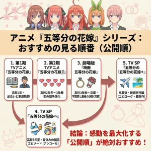 親となったファンが子供と一緒に作品を楽しむ光景も、今後は当たり前のものになります。『五等分の花嫁』は一過性のブームを超えて、『エヴァンゲリオン』や『Fate』のように時代を超えて愛される古典としての地位を確立しました。