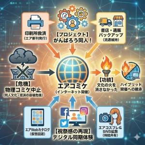 準備会はこの草の根の動きを公式に採用し、予定されていた開催期間に合わせて「エアコミケ」を実施すると宣言しました。これは単なるお祭りではなく、「がんばろう同人」プロジェクトの一環として位置づけられました。