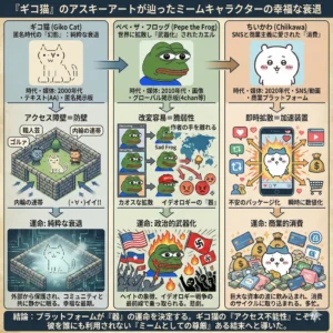 彼は単なるキャラクターを超え、歴史や経済を学ぶ「やる夫で学ぶシリーズ」などの教育コンテンツの主役として定着しました。AAが「絵」から「読むもの」へと変わった歴史的転換点といえます。