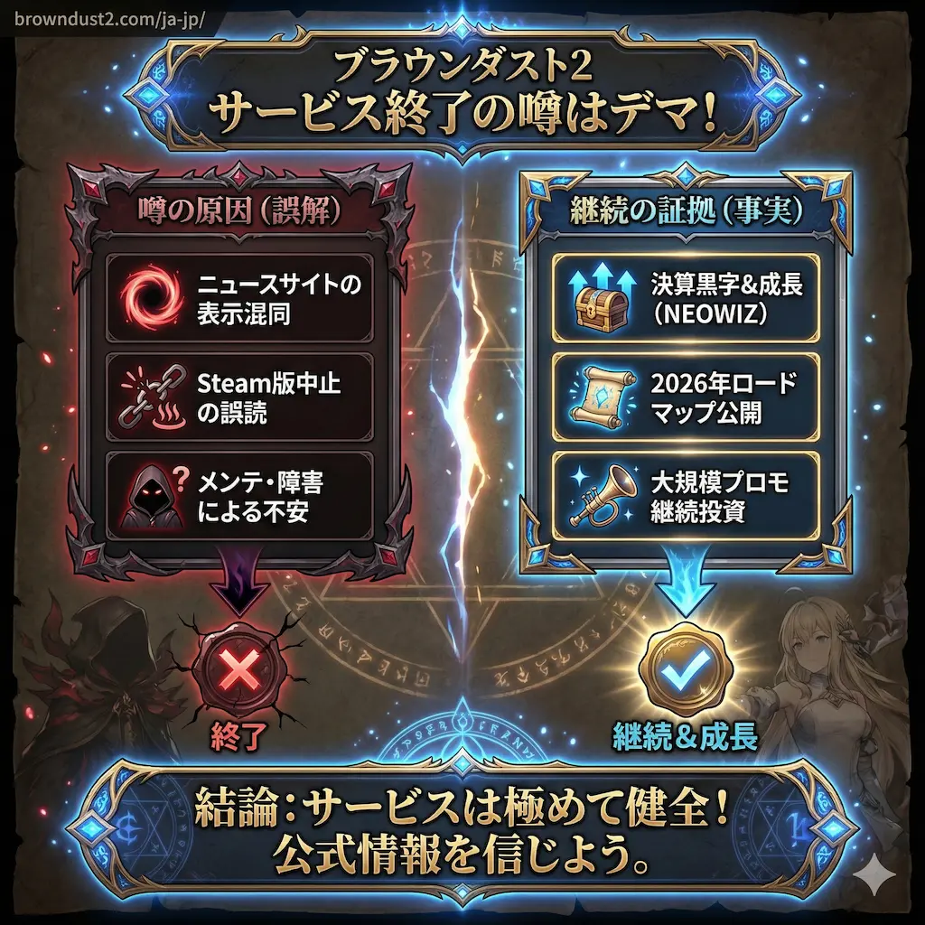 『ブラウンダスト2』サービス終了の噂はデマ!噂の理由と継続の証拠