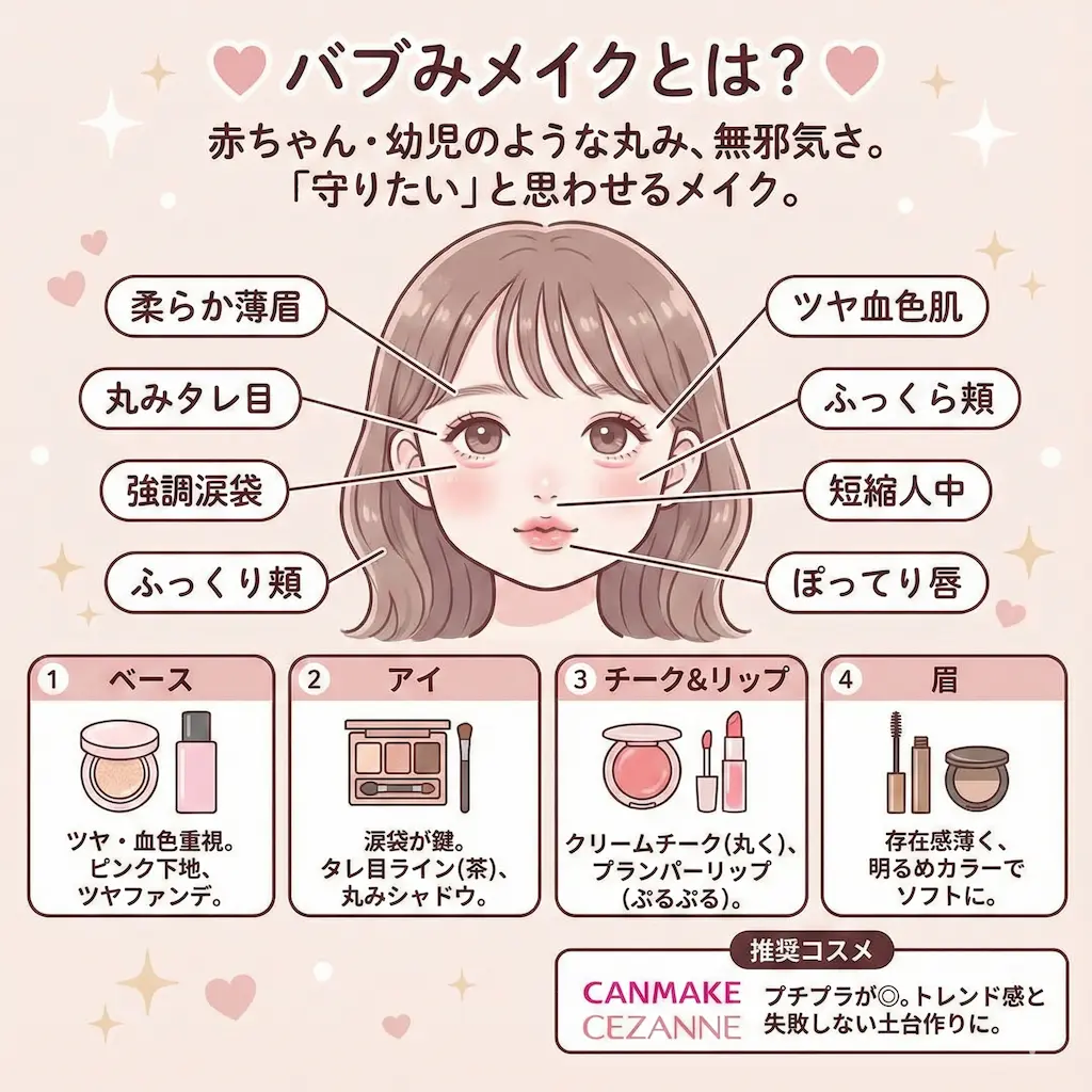 バブみメイクのやり方を解説!「赤ちゃん肌」と「愛され目」とは?